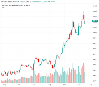 * Recuperó parte de las pérdidas de la víspera de la mano de embarques semanales muy próximos a las apuestas previas más optimistas y una situación climática en Brasil que sigue irresuelta. El atraso en la siembra de soja en Mato Grosso es muy importante; ahora se anuncian lluvias aunque no parecen ser suficientes para inclinar la balanza. La Argentina viene asimismo necesitada de precipitaciones para encarar la siembra del poroto; llegarían el fin de semana. Los chinos ya han salido del largo feriado pero no dieron señales de vida; es un punto clave para lo que viene. Tras la rueda, el USDA ubicó en 61% el avance de cosecha de la oleaginosa (2 puntos más de lo que imaginaba el mercado) La soja subió 1% en la rueda de Chicago.